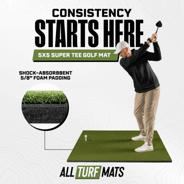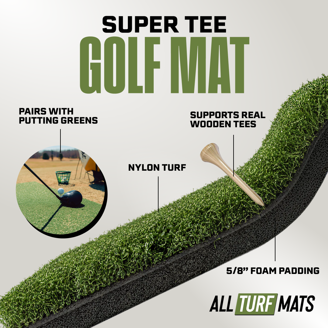 The Super Tee Golf Mat by All Turf MatsĀ® gives golfers the realistic feel of the course right at home.