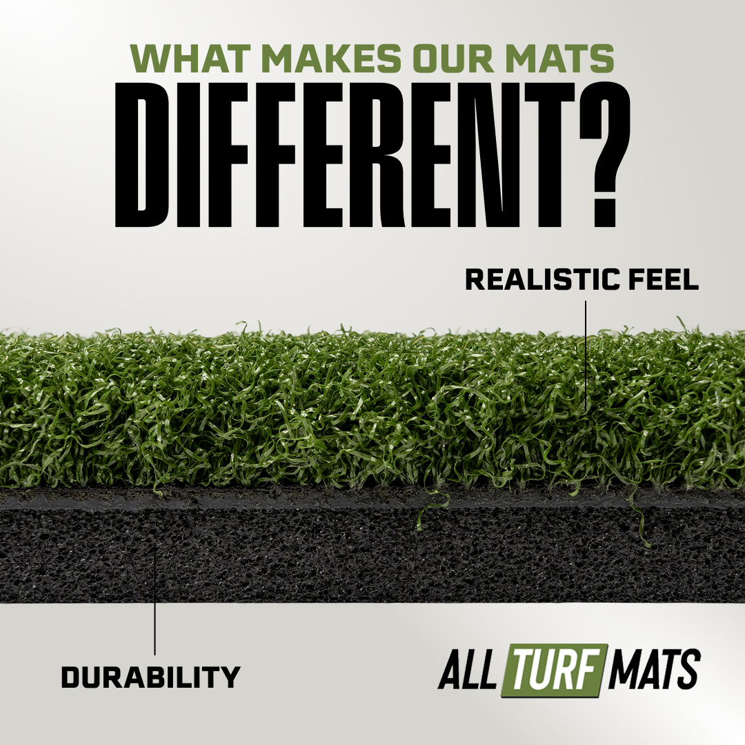 The turf is thicker and denser, allowing you to insert a wooden tee. The Fairway mats have shorter turf and will only accept a rubber tee inserted from the bottom of the mat.
